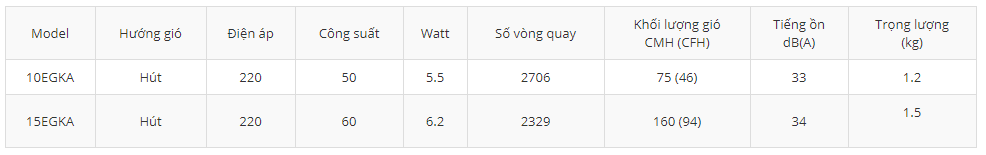 * Tất cả các giá trị thông số trong bảng trên đều áp dụng tại mức điện áp 220VAC.